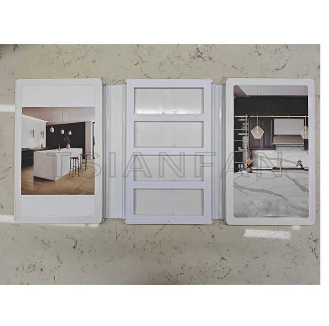 | 产品名 | 3折页石英石样品册批发价格,厂家定制直销人造石台面塑料样品册 |